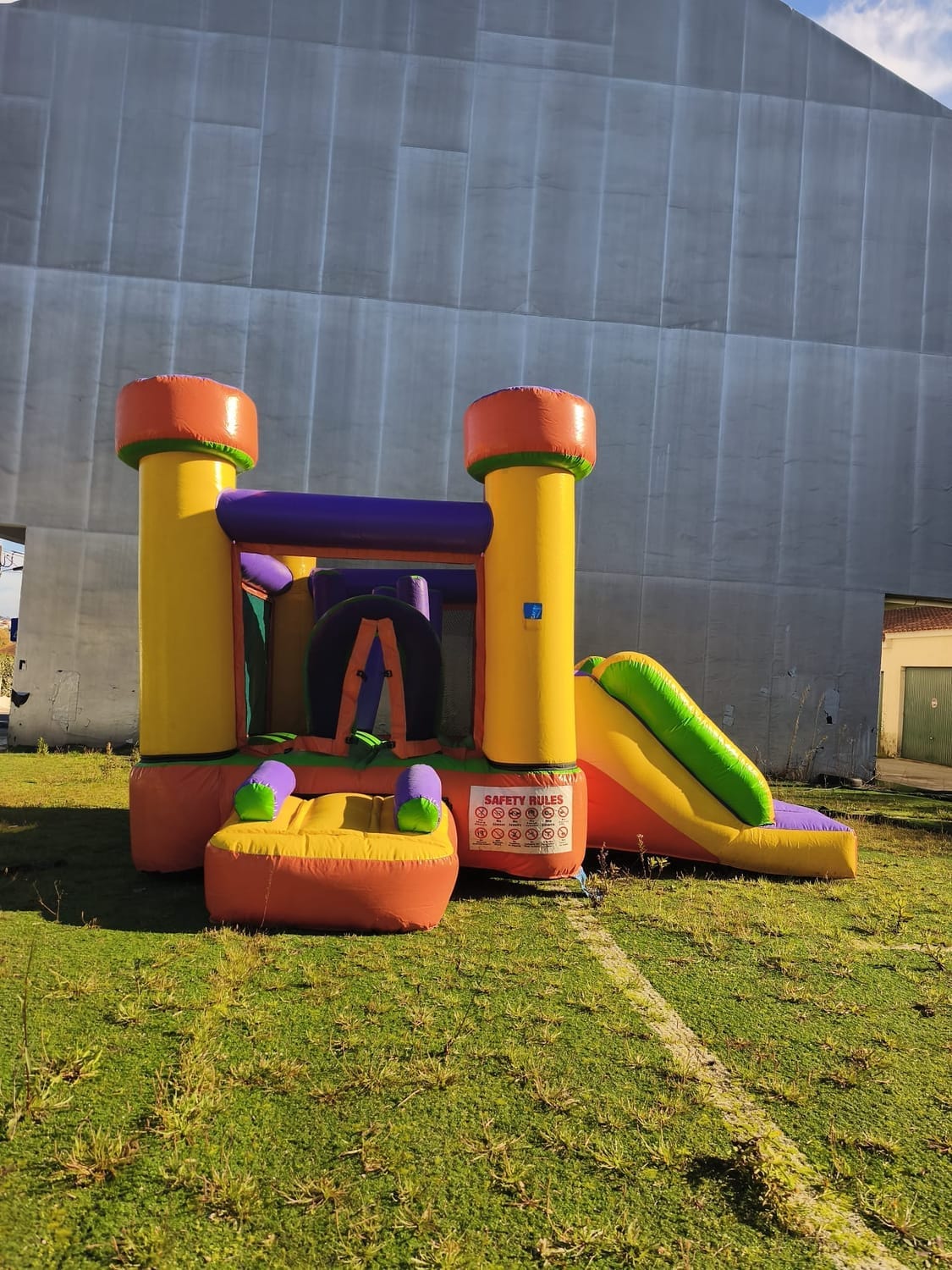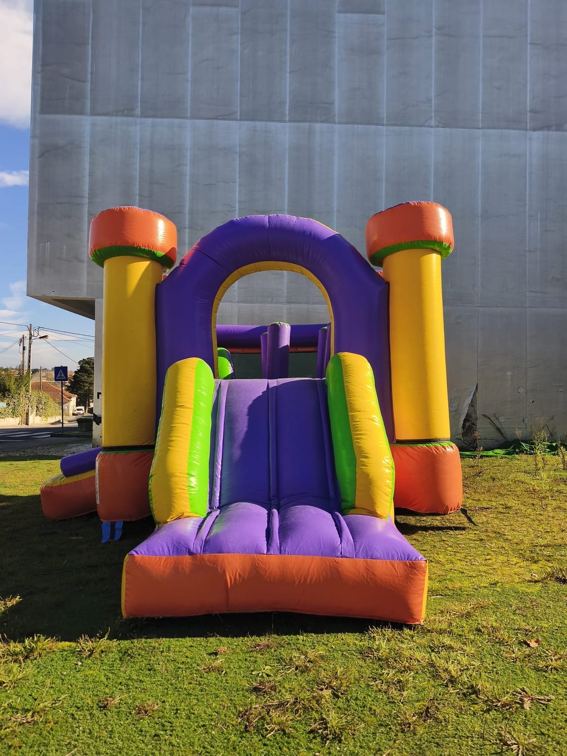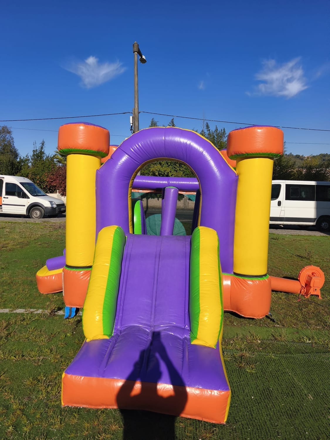 O Insuflável Combi Fun é a escolha perfeita para festas de aniversário, batizados ou eventos escolares! Com uma zona de pula e um escorrega, garante horas de diversão segura para crianças dos 3 aos 8 anos. Ideal para espaços exteriores ou interiores, este insuflável suporta até 8 utilizadores em simultâneo.